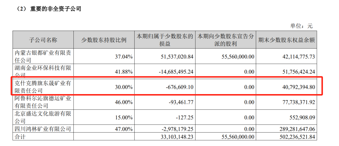 盛达资源2025年半年报显示,东晟矿业少数股东持股比例为30%。