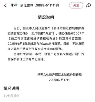 随着舆论发酵,丽江官方出面回应:并非新规,而是对 2007 年古城维护费征收政策的修订与完善。